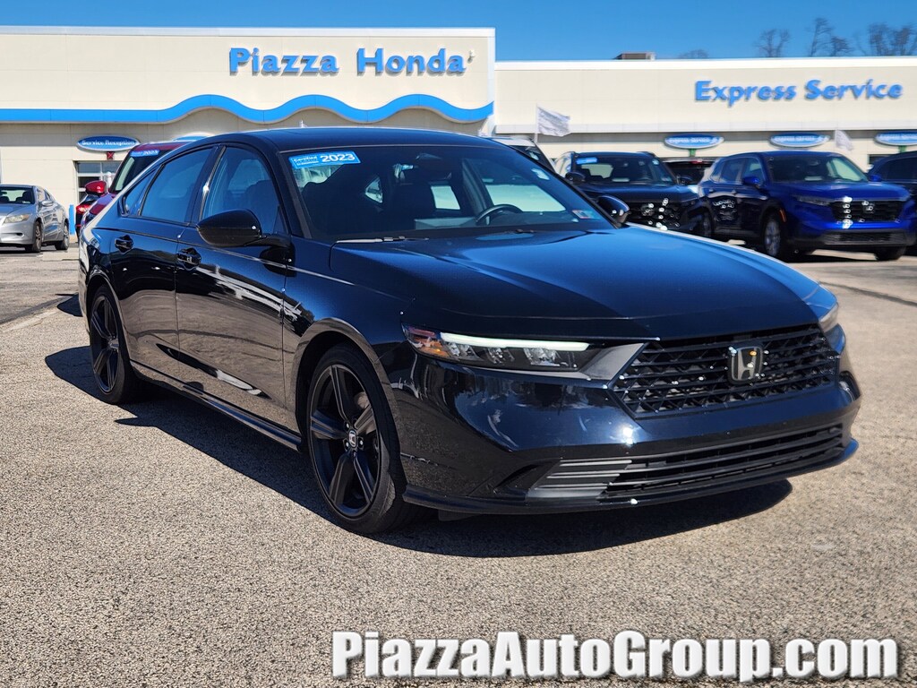 HONDA TRUE CERTIFIED, 2 Years or up to 100,000 miles (whichever comes first) from expiration of New Vehicle Warranty, Powertrain Limited Warranty: 7 Year/100,000 Mile (whichever comes first) from original in-service d, 182 Point Inspection / Reconditioning, Apple CarPlay!, MOONROOF!, LEATHER!, BLUETOOTH HANDS FREE, FULL BALANCE OF FACTORY WARRANTY!, INCLUDES WARRANTY, SERVICE RECORDS AVAILABLE, HEATED SEATS, REAR BACK UP CAMERA, NON-SMOKER!, TWO KEY FOBS!, REMOTE START, 2.0L 16V DOHC. Certified. CARFAX One-Owner. Clean CARFAX. 2023 Honda Accord Hybrid Sport-L w/o BSI Crystal Black Pearl 46/41 City/Highway MPG Odometer is 28497 miles below market average!